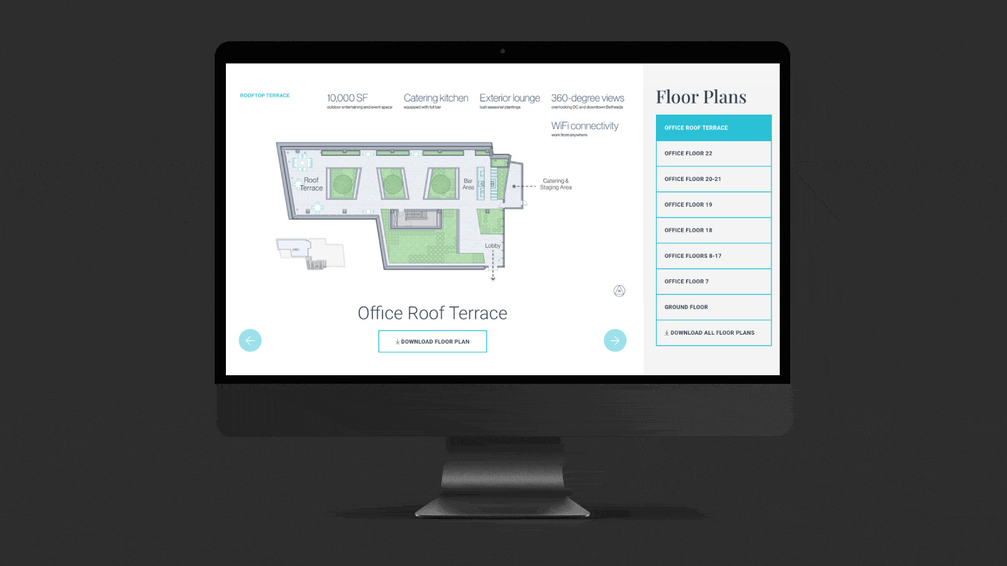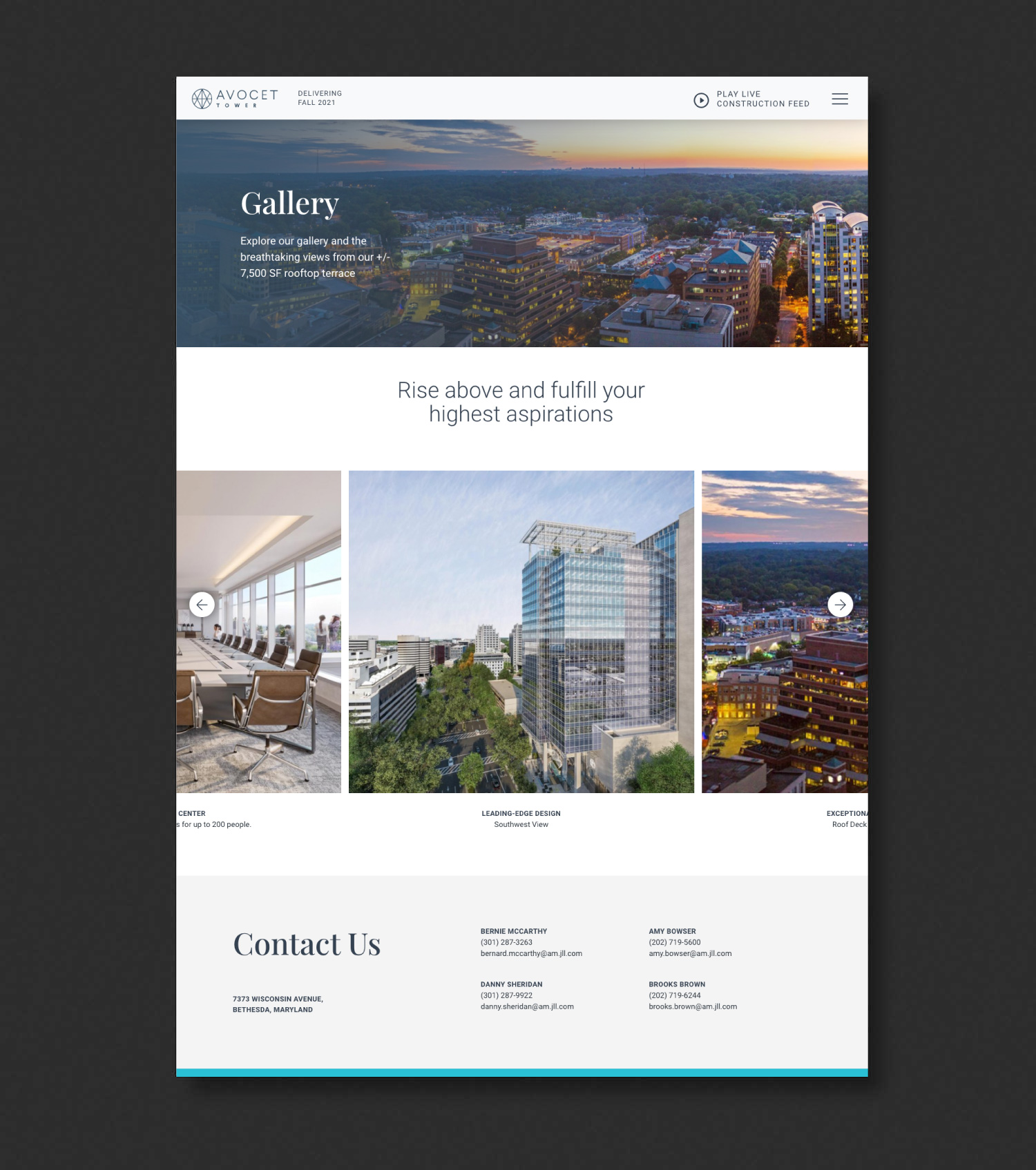 We worked with an existing branding team at JLL to formulate and redesign a property website for a unique, Class A office development in Bethesda, MD.